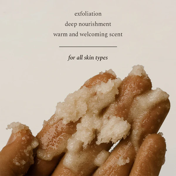 Deze natuurlijke suikerscrub combineert fijne suikerkristallen met een rijke mix van voedende oliën en boters voor een effectieve maar milde exfoliatie.
