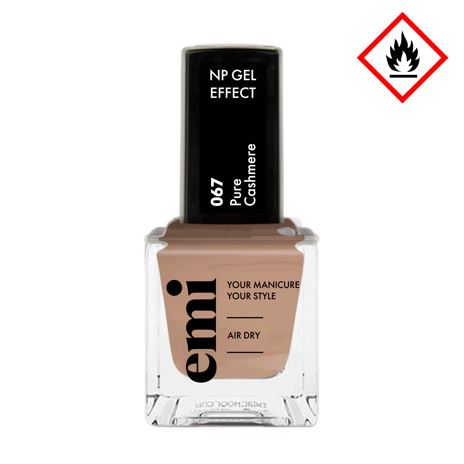 Pure Cashmere 067 van E.Mi is een licht bruin/beige nagellak met gel-effect. Superglanzend zonder lamp, droogt in 10 minuten en blijft tot 10 dagen perfect zitten.